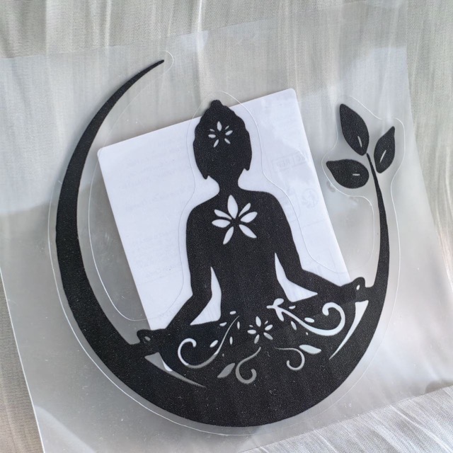 Különleges, spirituális hangulatú matrica, amelyen egy meditáló alak látható a növekvő hold ölelésében. Az apró virágminták és a levelek a harmóniát és a természetközeliséget szimbolizálják. Tökéletes dísz laptopra, füzetre, ablakra vagy meditációs sarokba, ahol nap mint nap emlékeztet a belső békére.