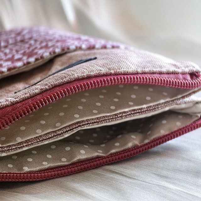 Kézzel készült, cipzáras kis válltáska, amely tökéletes a mindennapi apróságok tárolására. A felső része egyszínű kék, az alsó részen pedig fehér geometrikus-bohém minták díszítik. Belseje pöttyös béléssel és két rekesszel rendelkezik, így rendezetten tarthatod benne telefonod, pénztárcád és kulcsaidat. Könnyű, kényelmes viselet városi sétához vagy utazáshoz.